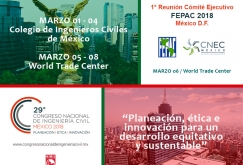 Del 05 al 07 de Marzo de 2018 se realizará la 1era. Reunión del Comité Ejecutivo de FEPAC en la Ciudad de México dentro del marco del 29avo. Congreso “Retos de la Ingeniería Civil en Sudamérica”.