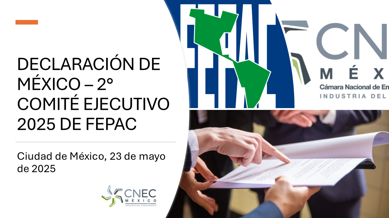 El Comité Ejecutivo de la Federación Panamericana de Consultores (FEPAC), reunido en México el 23 de mayo de 2025 en el marco del 40.º aniversario de la CNEC, reafirmó que la infraestructura es un motor estratégico del desarrollo sostenible y que su gestión debe responder a una visión regional y de largo plazo. Ante la creciente brecha de inversión en América Latina y los nuevos desafíos globales, la FEPAC destaca la importancia de la cooperación entre países y asociaciones de consultoría para fortalecer la competitividad, la capacidad de ejecución de proyectos y la presencia de la región en la FIDIC.