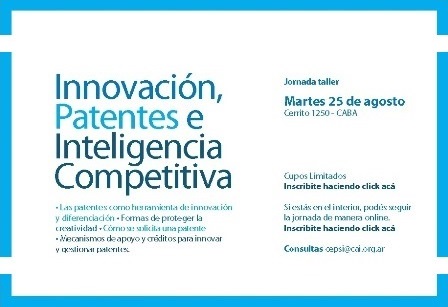 Organizada conjuntamente por la Comisión de Empresas Proveedoras de Servicios de Ingeniería (CEPSI) en la que participa la Cámara Argentina de Consultoras de Ingeniería (CADECI), el Centro Argentino de Ingenieros (CAI) y el Ministerio de Ciencia, Tecnología e Innovación Productiva de la República Argentina (MINCyT), el próximo 25 de agosto de 2015 se llevará a cabo la Jornada sobre Innovación y Propiedad Intelectual.
