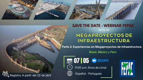 La FEPAC invita a participar en el webinar “Megaproyectos de Infraestructura – Parte 2: Experiencias en Megaproyectos de Infraestructura”, que se llevará a cabo en el marco de su serie de encuentros virtuales orientados al intercambio de conocimiento en el sector.